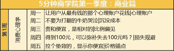 每周,我会围绕一门学科,一路展开,比如在“价格锚点”之外,我会接着给你讲“比例偏见”、“损失规避”等5个消费心理学的不同层面。