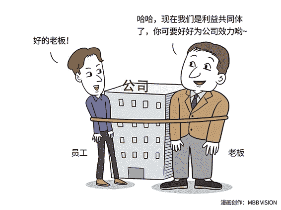形态:事业共同体但一些员工明白,短期利益和长期利益之间,必须有一个取舍;风险大小和收益多少之间,必须有一个平衡。我愿意投资自己应得的、无风险的短期收益,获取有风险的、长期的但是更大的回报。这项投资就叫做:事业。