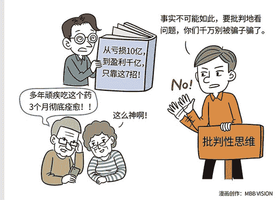 其实,我们并不比我们的父母对谣言更有免疫力,只是他们更相信健康的谣言,我们更相信致富的谣言。我们都缺乏一样非常重要的能力:批判性思维。
