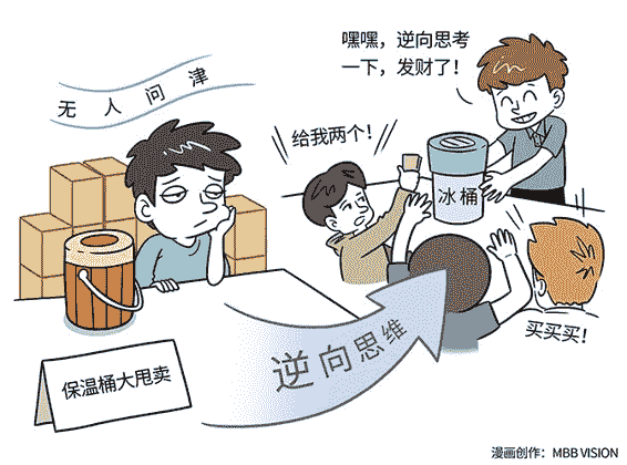 比如保温瓶的功能是保热。你从这个功能“逆向思维”一下,它是不是可以保冷呢?于是就有了冰桶。