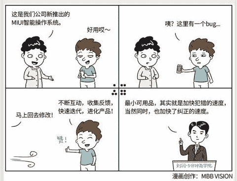 最小可用品,是《精益创业》里提出的一个,通过做能满足最基本功能的产品,不断接受用户反馈,快速迭代,直到做出真正符合需求的好产品的方法论。