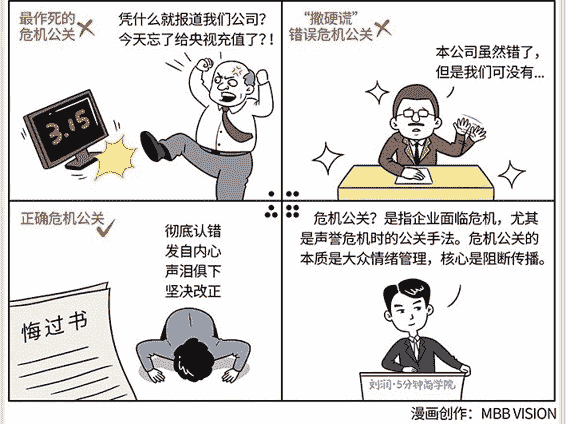 移动互联网时代,媒体,即便是央视的3·15晚会,都只是这个危机的导火索。公关部门需要清晰地认识到,真正的危机,开始于不受任何媒体控制的、在互联网里如洪流一样急速传播的情绪。媒体只管杀人,不管刨坑。一旦点名了,忘了中央电视台吧。真正的危机还没开始。是你下面的回应,决定了这个危机是否开始,如何开始。