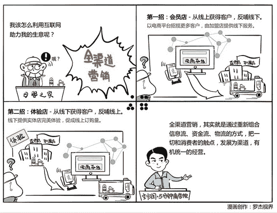 全渠道营销,就是利用最新的科技和最有效的手段,把信息流、资金流、物流重新高效组合,用一切可能的方法,接触消费者。