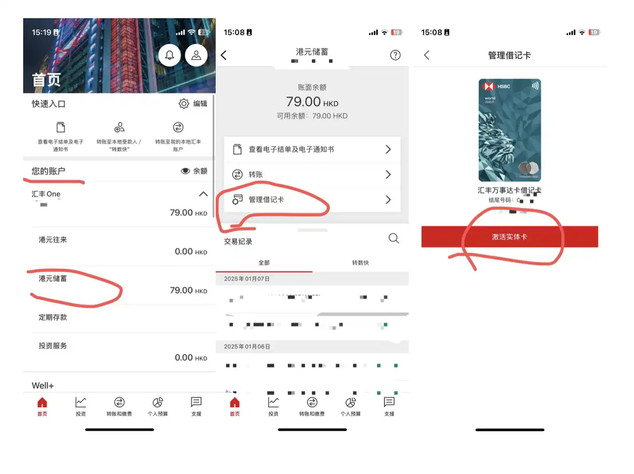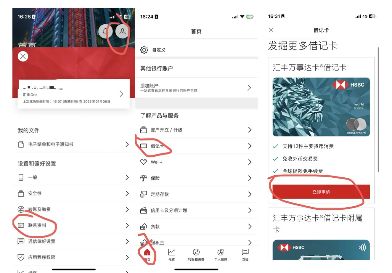 申请:打开 “HSBC HK” APP,往下滑动,找到借记卡。