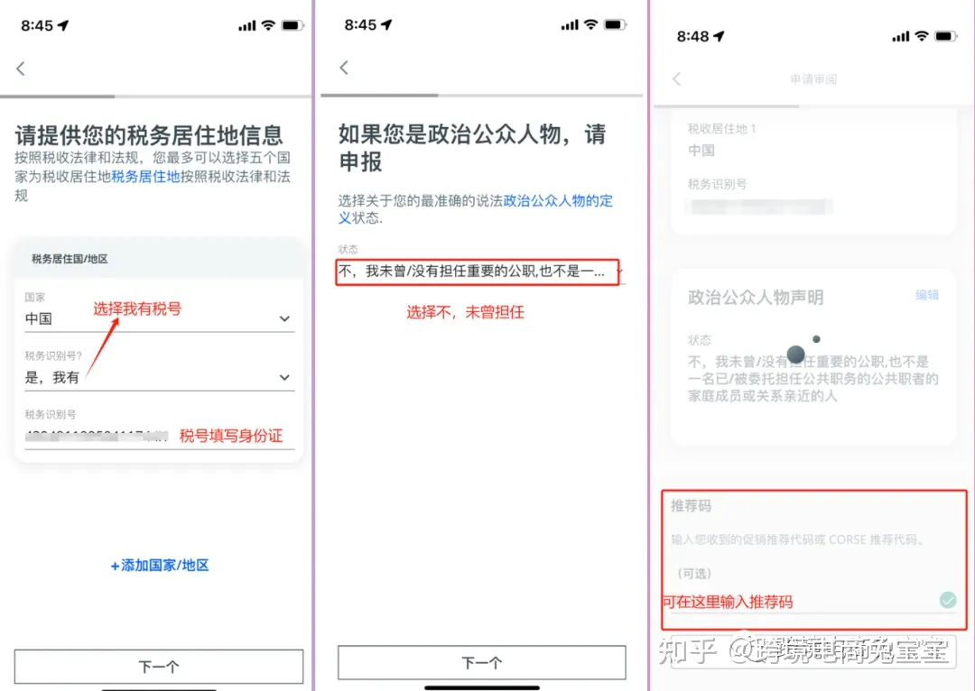 - 税务信息用身份证,选择中国,选择“是,我有”,