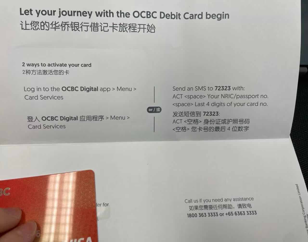 同步寄出(地址一定要填写手机号。。) - 通过OCBC APP 在邮箱中,问普通问题客服要实体卡的快递单号就行(5天内肯定会回复,直接复制下面的模版内容!)