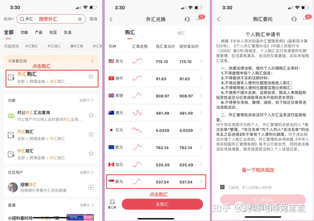 招行APP搜索“外汇”,选择外汇购汇,选择新元,点击去购汇