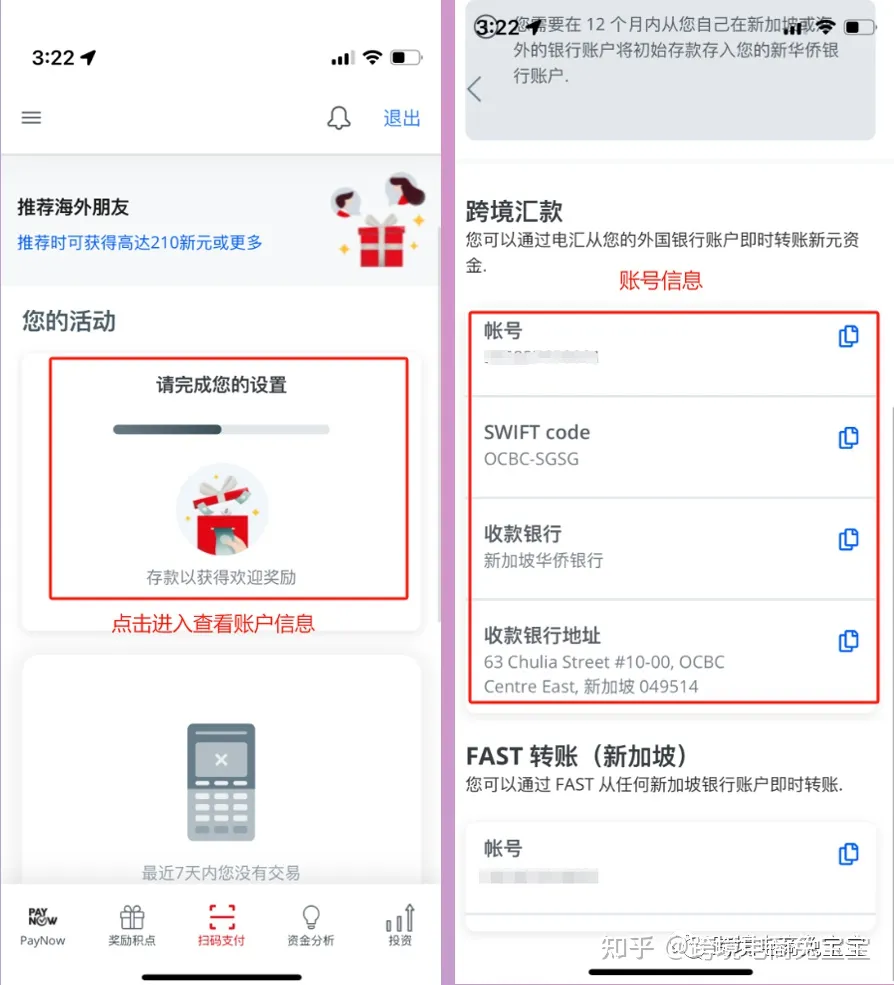 - 收款账号:就是OCBC的账号 【默认首次入金新元账户 Statement Saving Account】