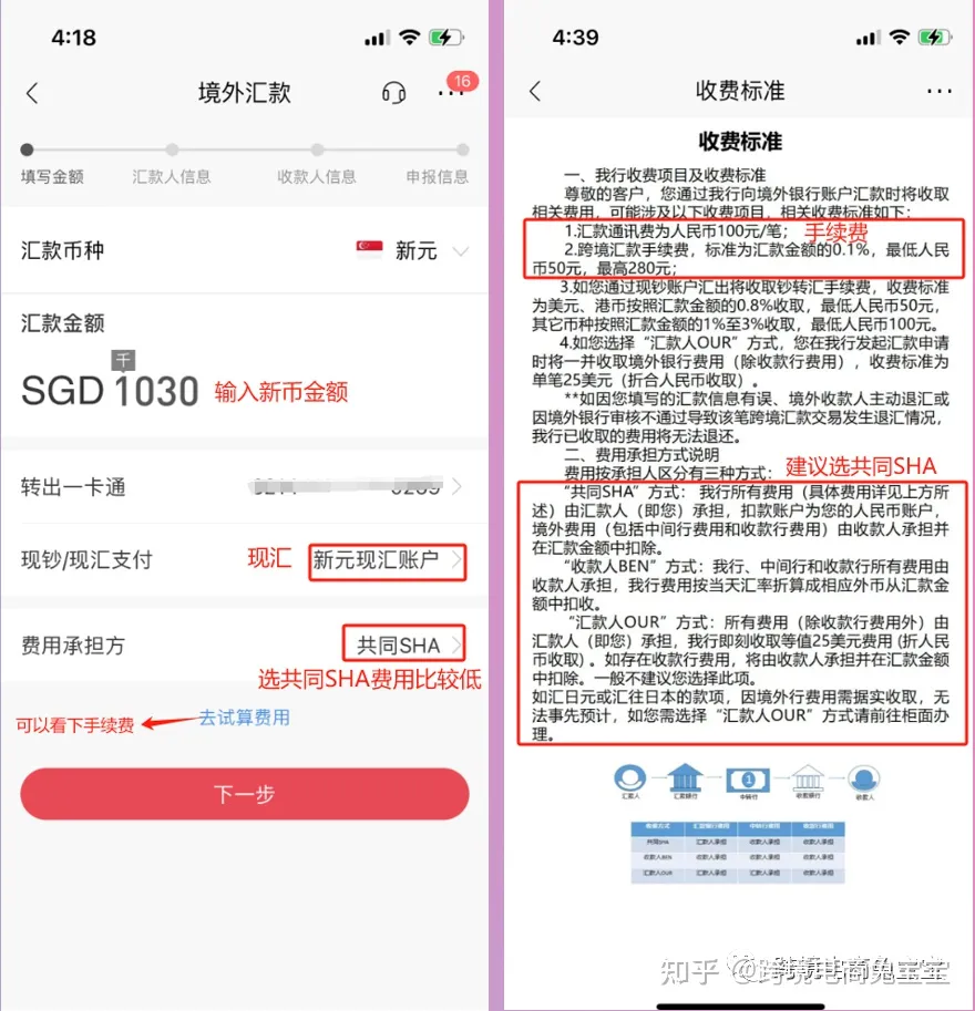 输入新元金额,选择现汇,费用承担方选择共同SHA(比较省钱)。