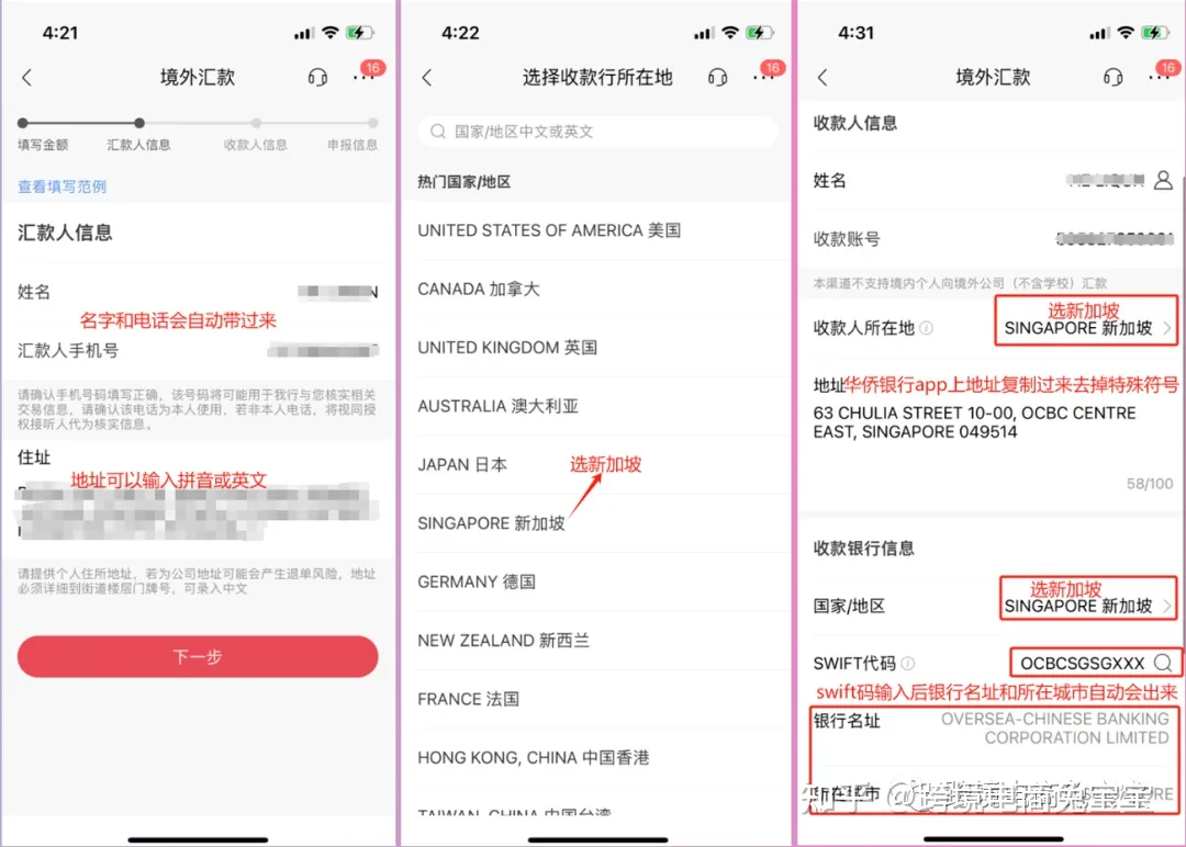 - SWIFT代码输入: OCBCSGSG(我是这么填写的)