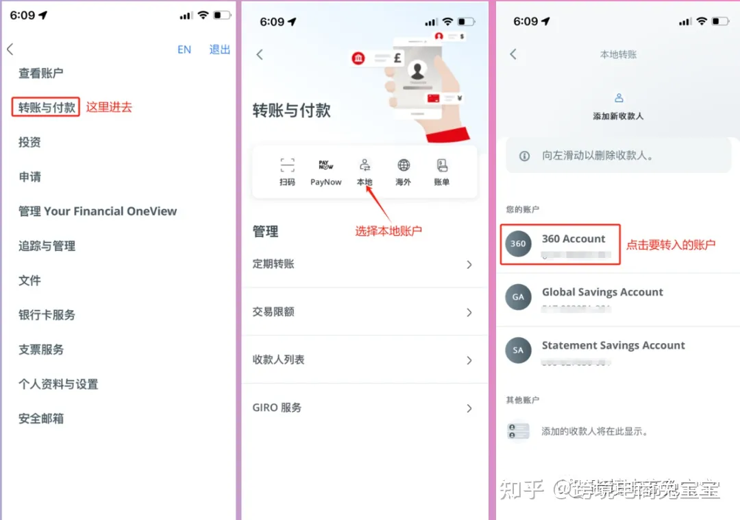 OCBC账号之间转账