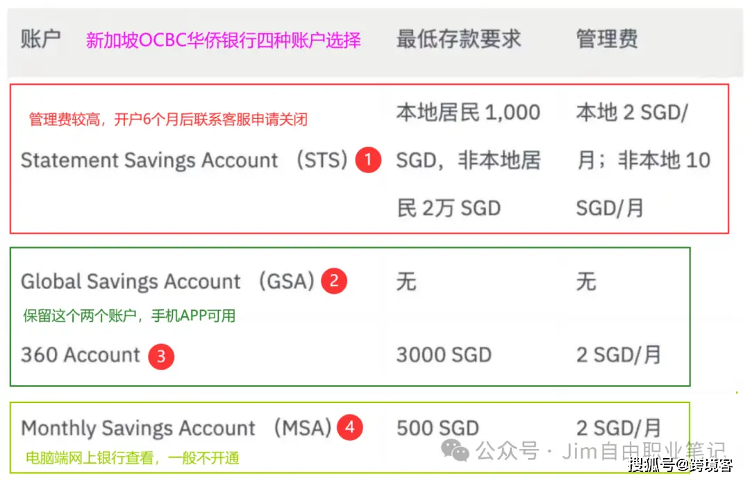 - 注:表内数据来源于 OCBC 官网 PDF