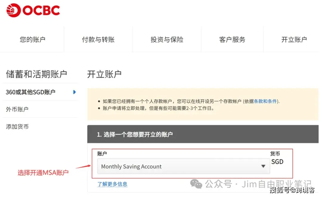 更新1 如何开通 Monthly Savings Account