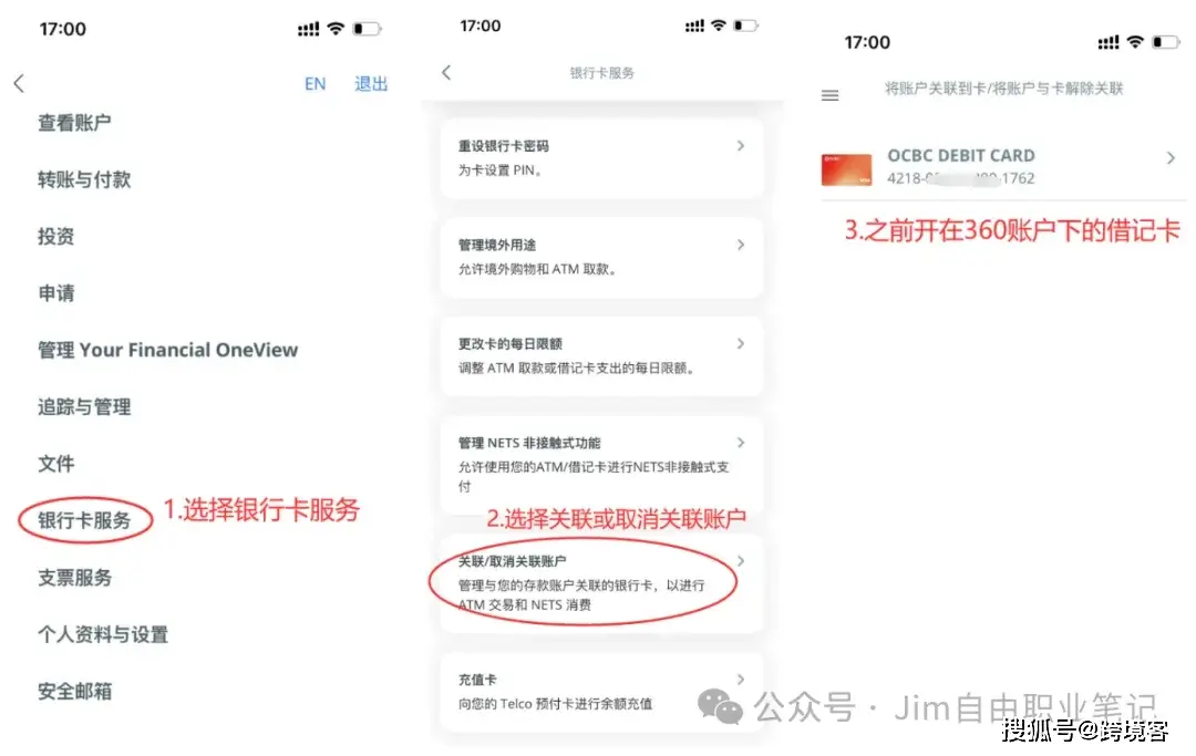 菜单栏——>1.银行卡服务——>2.关联/取消关联账户——>3.选择卡(之前在360账户下开的借记卡)