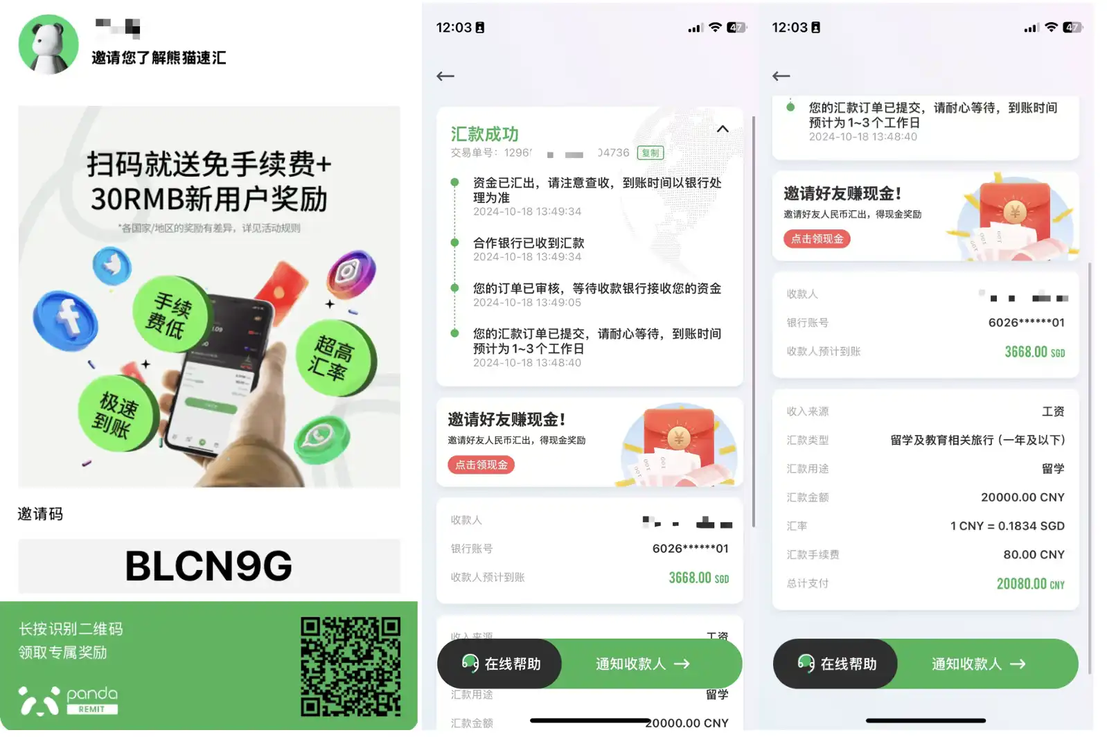 我的熊猫速汇-邀请码: BLCN9G(别着急,看下图二维码和奖励说明,直接扫码就行)