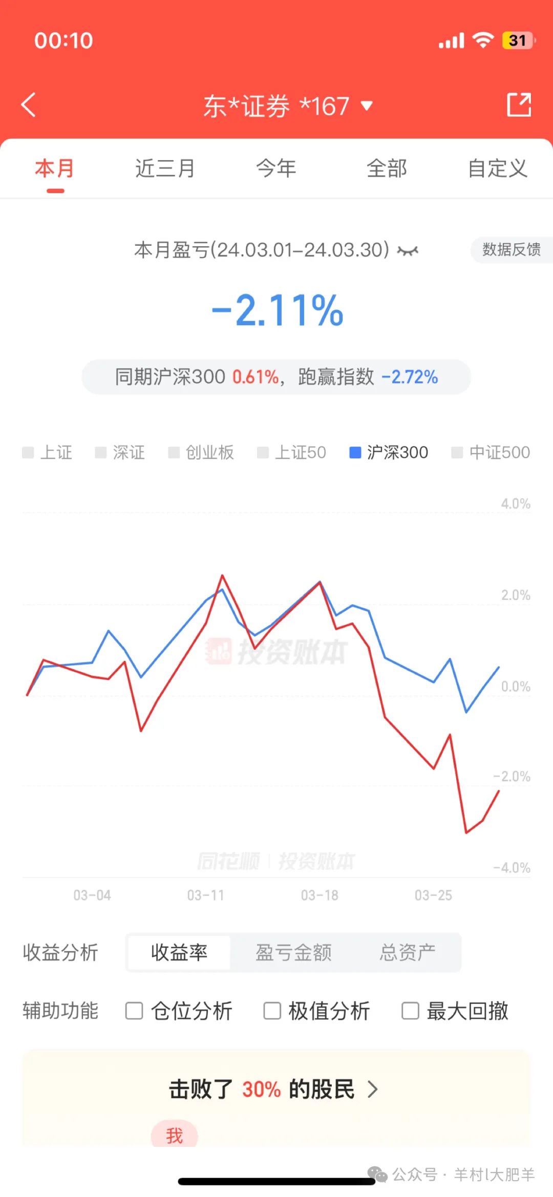 虽然本月业绩比较一般,略输大盘,
