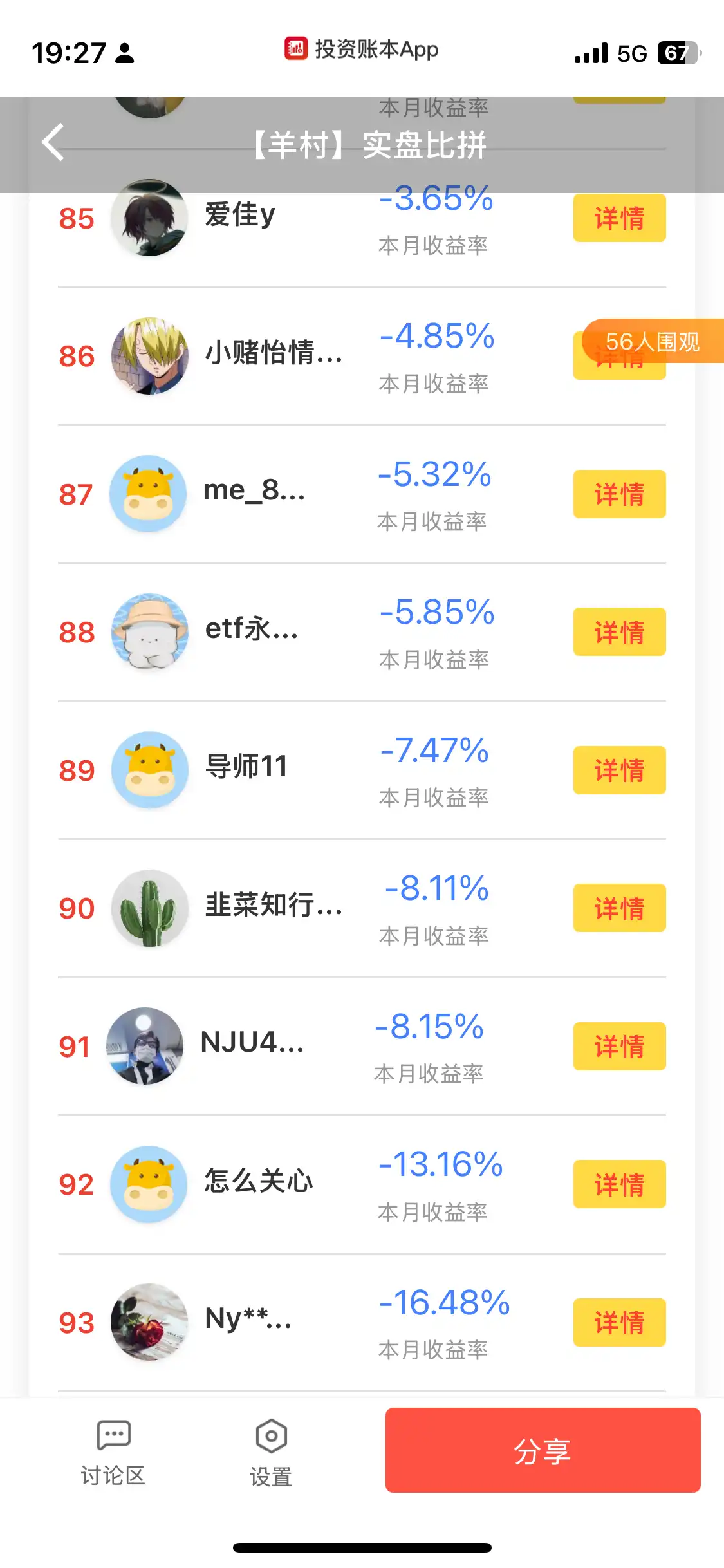 加进来的人已经93人了(其中本月空仓:40人)!